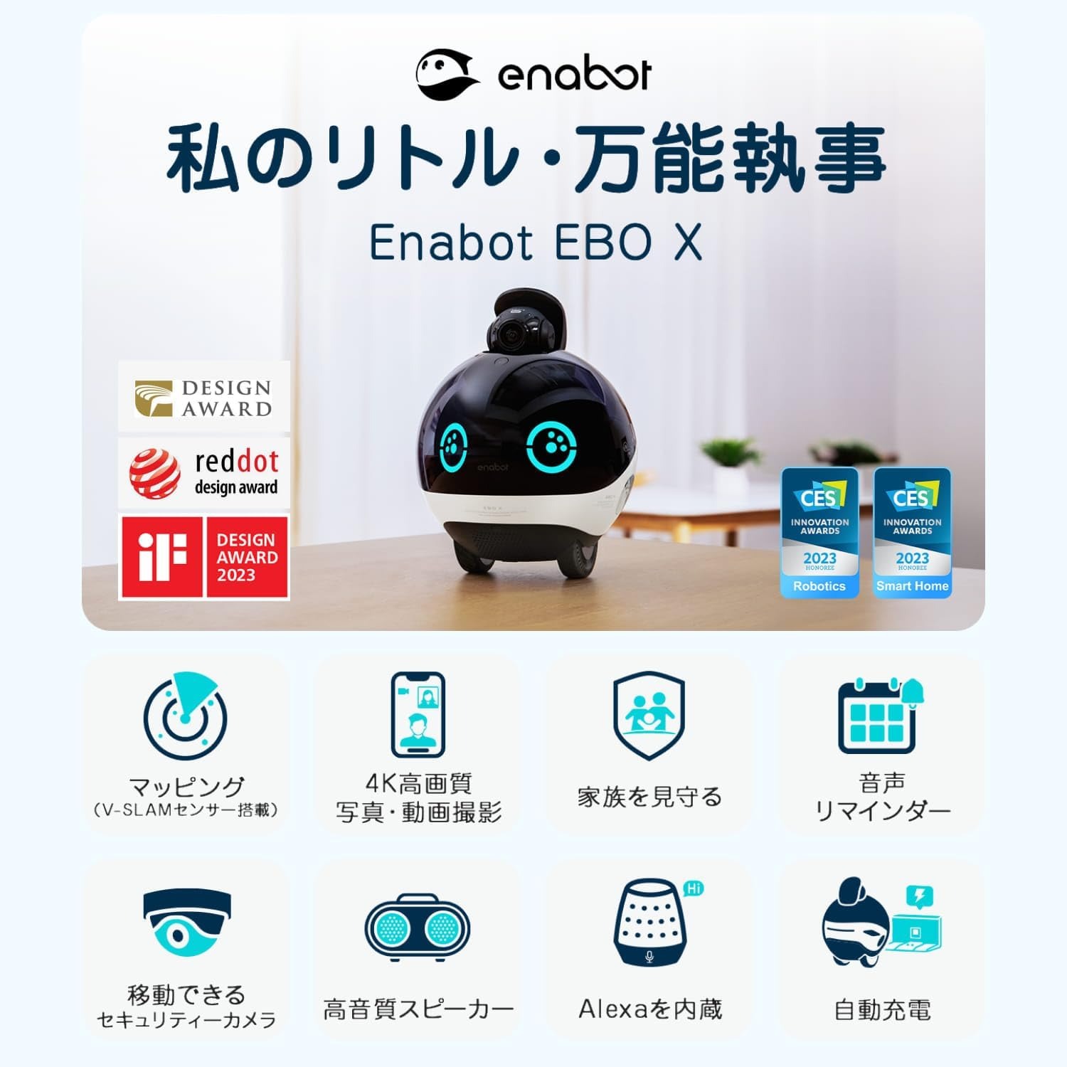 Enabot EBO X ホームロボット スピーカー内蔵 Alexa音声制御、スマートマッピング機能搭載 移動式ホームモニタリングロボット 4K UHDセキュリティカメラ